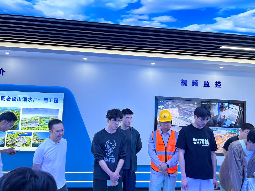 第六水厂厂长余世银带领同学们参观了水厂的全套工艺流程构筑物,主要参观了平流沉淀池、V型砂滤池、臭氧制备车间、生物活性炭滤池等。通过余世银厂长的生动讲解,解答了老师和同学们的疑惑。通过此次前往东莞市水务集团参观交流,学生们将课堂上学到的理论知识与实际工程案例相结合,更深入地理解给水和污水处理的工艺流程、构筑物构造和运行管理难点。此外通过了解水务集团的运营管理模式和水厂工作环境,学生们对自己的职业规划有更清晰的认识。