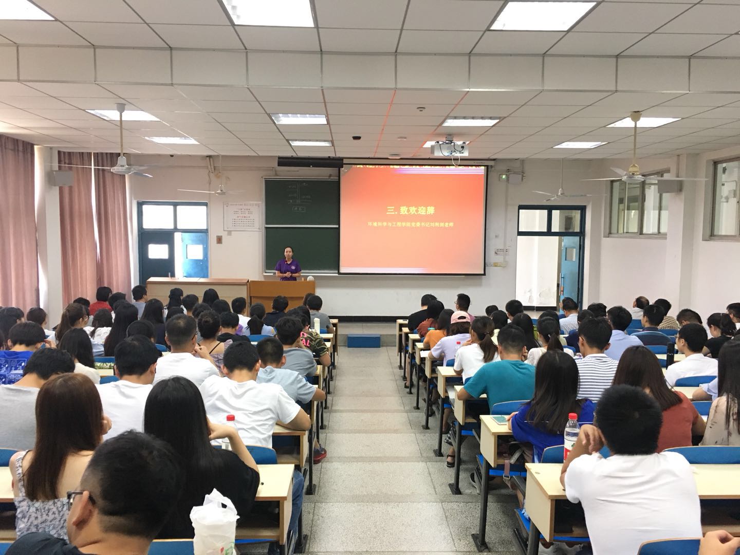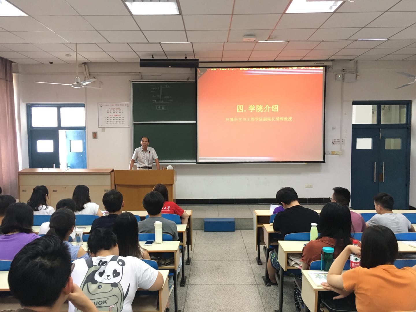 接下来,副院长胡辉教授为同学们介绍了我院的基本情况。环境学院由环境工程系,市政工程系,供热供燃气通风及空调工程系和环境科学研究所,即“三系一所”构成,目前在读研究生近400人,教职工80人。研究生要努力学习,更要学会学习。胡教授对新生们提出要求:学会对知识的质疑、批判和再创造,并在理论学习中做到深度阅读,精读深思,汲取养分,引导自己下一步的方向。