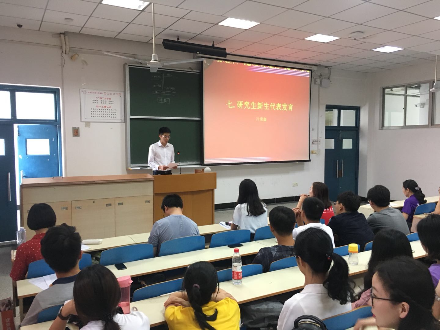 市政系硕转博学生丁家琪同学作为在校生代表发言。他和同学们分享了自己读研两年的经验与感受,告诉同学们在接下来的学习生活中要积极主动,不要害怕失败,学会在艰苦探索的过程中品味一点一滴的快乐,同时也要走出寝室,积极锻炼。希望同学们能勇攀高峰,在自己的人生中写下精彩的一页。