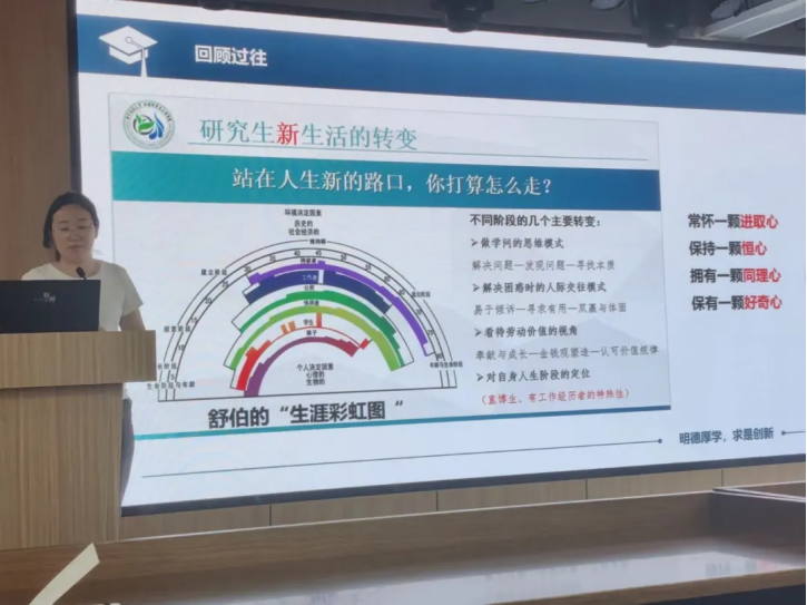 杨丹妮结合入学时的生涯教育和当前学生所处的阶段,从不同类型的毕业生简历出发,引导学生积极自我觉察、理性看待外部环境、重点过好当下,有计划、有节奏地提升综合能力,完成科研任务,确保高质量毕业和就业。