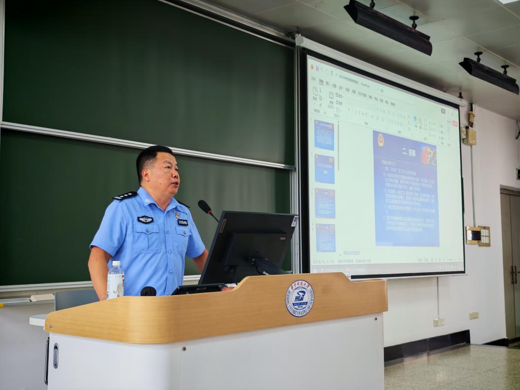 喻家山保卫处熊警官为同学们开展了校园反诈安全教育。熊警官通过真实案例,深入浅出地介绍了当前常见的诈骗手法,并结合工作实际提醒同学们在日常学习与生活中需保持警惕,增强辨别能力,切实保护个人财产与人身安全。