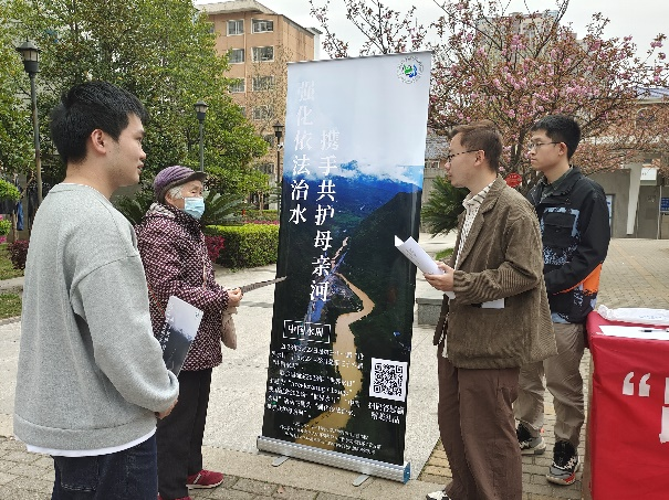 科普活动第三部分是《走人与自然和谐共生的中国式现代化道路》的理论宣讲。红色理论学讲团成员、环境学院环工本科生党支部、环境学院研会临时党支部和研究生第二团支部部分成员,在现场向喻园小区居民进行宣讲,结合长江、黄河、湖溪河等讲解国家相关政策