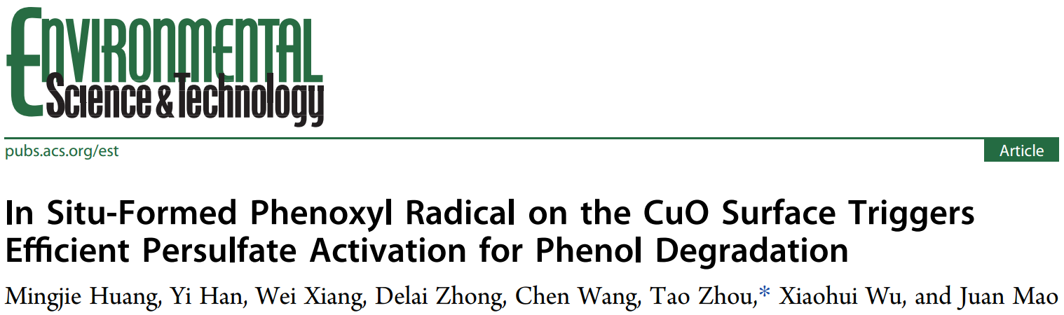 论文题目:In situ Formed Phenoxyl Radical on CuO Surface Triggers Efficient Persulfate Activation for Phenol Degradation