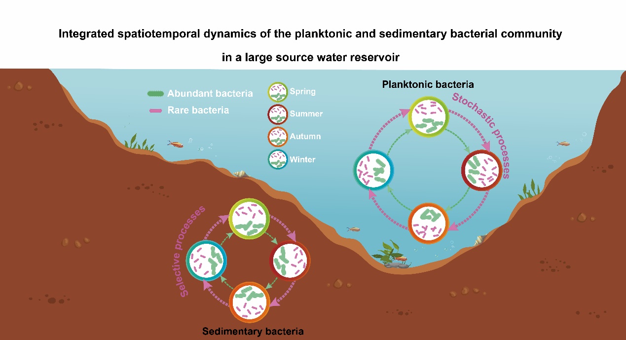 近日,我院党晨原讲师在环境领域顶级学术期刊Water Research上发表了题为“Rare biosphere regulates the planktonic and sedimentary bacteria by disparate ecological processes in a large source water reservoir”的研究论文,探究了南水北调中线工程水源地——丹江口水库的水体和沉积物中细菌的群落动态和生态驱动过程,揭示了稀有细菌在群落的时空演替中的主导作用,以及这些稀有细菌在水体和沉积物中分别受随机过程和选择性过程的调控。