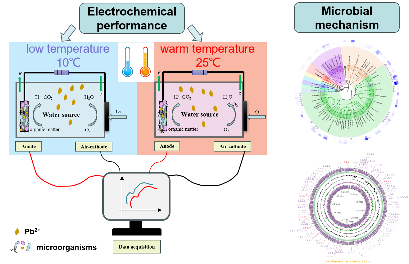 近日,我院付杰教授团队在环境领域顶级学术期刊Water Research上发表了题为 “Low temperature acclimation of electroactive microorganisms may be an effective strategy to enhance the toxicity sensing performance of microbial fuel cell sensors” 的研究论文。微生物燃料电池(MFC)传感是一种很有前途的实时检测水体生物毒性的方法,但传感灵敏度低,限制了其应用。该研究采用低温驯化作为提高MFC生物传感器毒性传感性能的策略。两种类型的MFC生物传感器在低温(10 °C)或室温(25 °C)下启动,分别表示为MFC-Ls和MFC-Ws,使用Pb2+作为目标毒性物质。在低温(10 °C)和室温(25 °C)操作温度下,与MFC-Ws相比,MFC-Ls对Pb2+均表现出优异的传感灵敏度。例如,在10 °C下,1 mg/L Pb2+冲击时,MFC-Ls的电压抑制率为22.81%,而MFC-Ws的电压抑制率仅为5.9%。形态观察表明,与MFC-Ws相比,MFC-Ls的阳极生物膜具有适量的胞外聚合物、较薄的厚度(MFC-Ls为28.95 μm,MFC-Ws为41.58 μm)和较高的活细胞比例(MFC-Ls为90.65%,MFC-Ws为86.01%)。微生物分析表明,嗜冷电活性微生物和低温酶的富集及其对Pb2+冲击的敏感性是MFC-Ls生物传感器有效运行和良好性能的基础。总之,电活性微生物的低温驯化不仅提高了MFC生物传感器的灵敏度,而且提高了其温度适应性。