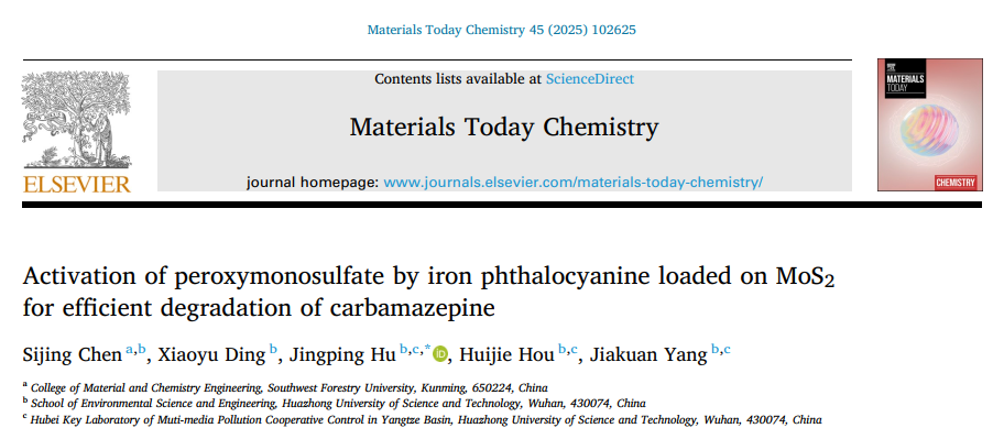 Activation of peroxymonosulfate by iron phthalocyanine loaded on MoS2 for efficient degradation of carbamazepine, Materials Today Chemistry, 2025, 45, 102625