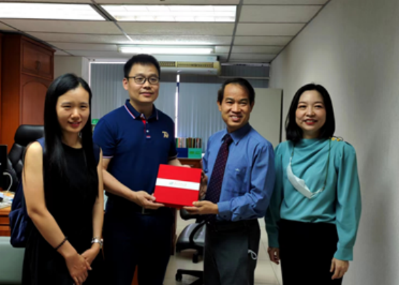 5月12日上午双方交流及郭利民代表我校向Sukalin Wanakasemsan主任赠送纪念品留影