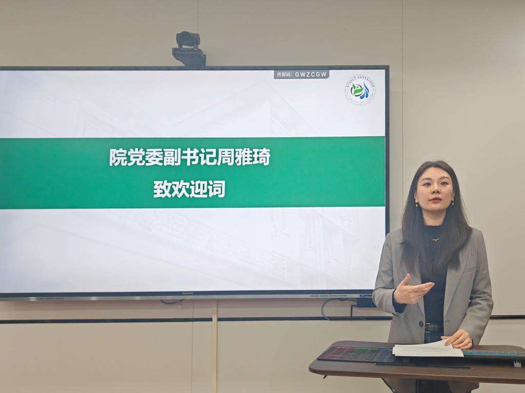 学院党委副书记周雅琦致欢迎词。她向两位返校校友表示热烈欢迎,并简要介绍了学校学院开展就业和选调生工作的情况。她强调,奔赴基层的选调生们忠于信念、勤于认知、勇于创新、敢于担当,是学校和学院的骄傲,充分展现了华中大环境人对人民的感情、对社会的责任、对国家的忠诚。她寄语同学们,要树立远大志向,在实践中实现个人价值,向优秀校友看清,学习校友面对困难时的乐观态度与实干精神,传承和发扬环境学子的优良作风,为社会做出贡献。