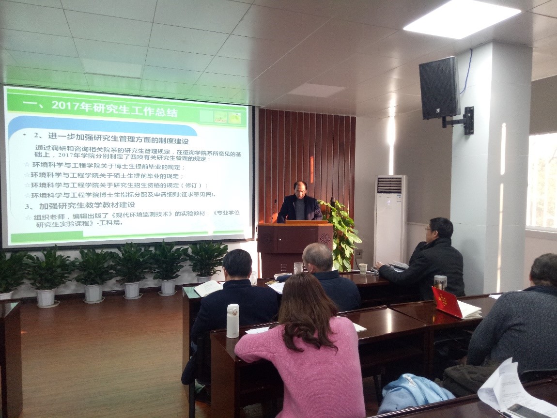 2018年1月17日14:30,在东十三楼207会议室,环境学院召开2017年度总结大会,学院领导班子就分管工作进行年度总结,工会主席胡平放主持会议,全体教职工参会。