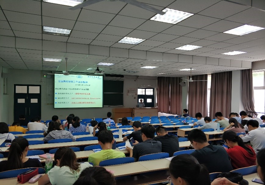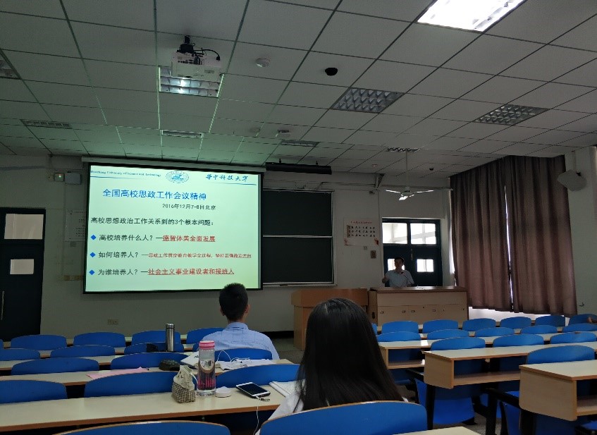 为加强大学生思想政治建设,2018年5月24日,在东十二楼201教室,环境学院院长杨家宽为17级学生(建环、环工)上了一堂“大学人才培养”为主题的思政课。