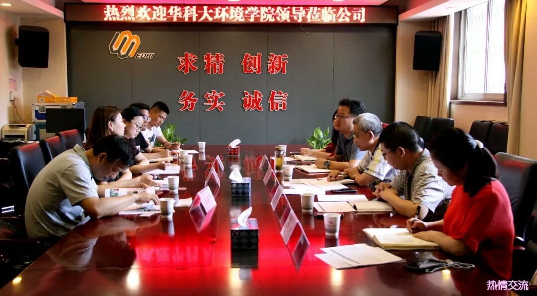 交流中,武汉市政副总经理周俊对武汉市政的历史沿革、组织结构以及人才队伍进行了介绍,对华中大为武汉市政院输送大量人才表达了感谢,他希望通过建立教育实习基地的方式进一步加深与华中大环境学院的合作。饶院长作为校友,也深切表达了自己对母校的深厚感情,他表示,环境学院是他的家,武汉市政院的发展与华中大环境学院密不可分,希望通过与环境学院的交流合作,促进双边的共同发展。