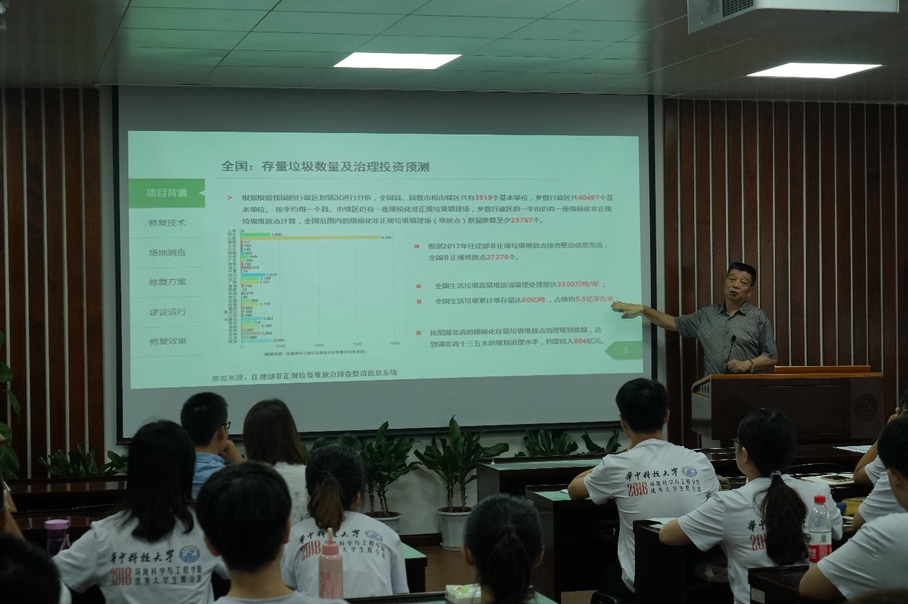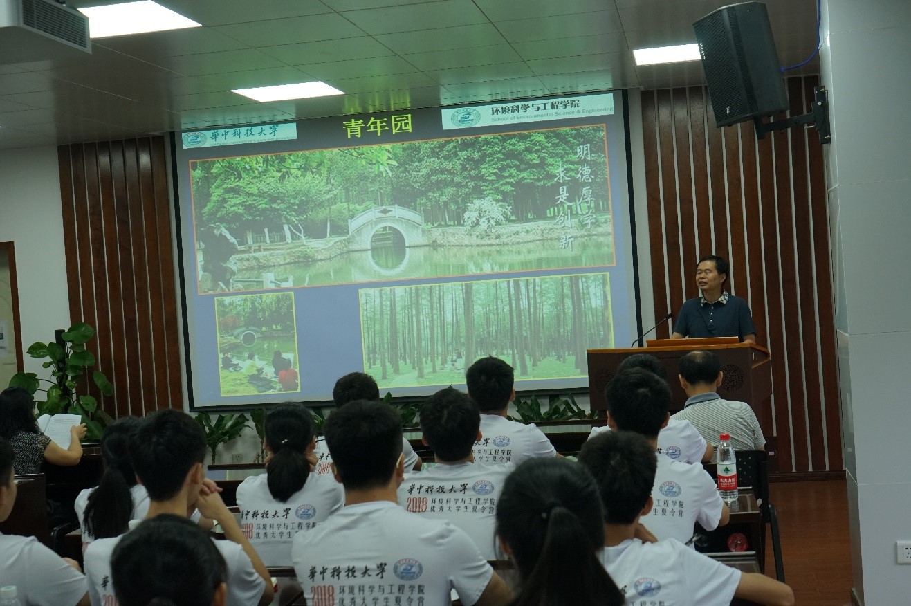 杨家宽院长做了题为“如何开启研究之路—喻见威廉williamhill,开创环境美好未来”的报告。他向各位营员介绍了威廉williamhill的学科平台,并指出举办夏令营旨在搭建平台增进各校学生的互动交流,同时也为选拔优质生源提供契机。杨院长结合自己培养研究生的经验,详细讲解了“泡菜”理论,即大学教育中既要吸收养分,同时也要贡献养分。四个研究生专业负责人做了各专业介绍之后,胡敬平教授做了“固废处理处置资源化与环境电化学功能材料”的报告,陈静教授做了“土壤修复:绿色可持续修复技术现状与发展”的报告,谢鹏超老师做了“传统市政给水处理危机及发展新趋势”的报告,徐新华主任做了“零能耗建筑及实现”。