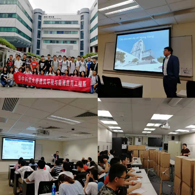 7月10日上午,实习团队来到香港城市大学,在建环系校友万航的带领下参观了香港城市大学校园,随后黄公胜教授给同学们全面的介绍了香港城市大学以及建筑与土木工程系的发展、学生培养与交流、硕士与博士申请等事宜,随后介绍了基于无线传感器网络的室内环境智能监测、考虑不确定性的空调控制系统等研究。我们也邀请到了华科建环系校友吴伟老师,现为香港城市大学助理教授,他通过个人的学习工作经历,与同学们分享如何高效工作以及在再深造申请时应注意事项,随后介绍了他的研究工作包括吸收式热泵、零能耗建筑等。最后黄公胜教授带领大家参观了建筑与土木工程系的实验室,并参观了香港城市大学通风方面专家林章教授的层式通风实验室,由该团队博士详细介绍了实验室搭建目的、层式通风概念以及研究内容。