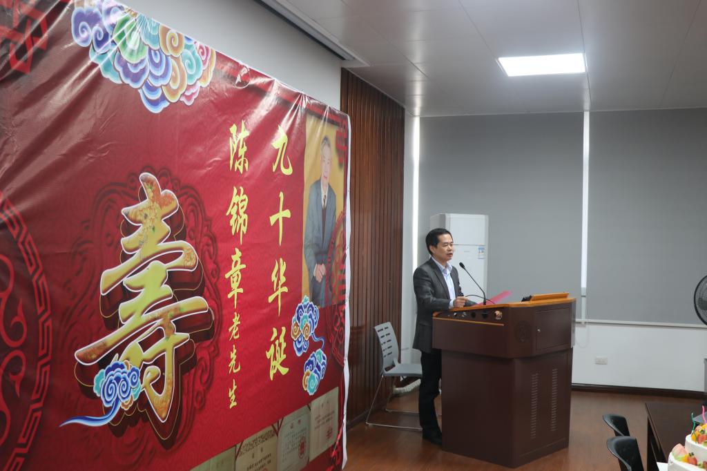 环境学院院长杨家宽回顾了老先生对他的引领、培养和鼓励,向陈锦章老先生致以了衷心的祝福和由衷的感谢,同时他提到,陈锦章先生是环境事业的奠基人,引领环境类专业取得了突破性进展,为环境类专业的发展和环境事业做出了突出贡献,如今,历史的接力棒传到了新一代教师集体的手中,希望老师们继续秉承陈锦章老先生心怀理想、潜心教育、团结协作、艰苦奋斗的精神,不忘初心、砥砺奋进,带领环境类学科取得更大突破和发展,为环境事业做出更大贡献。