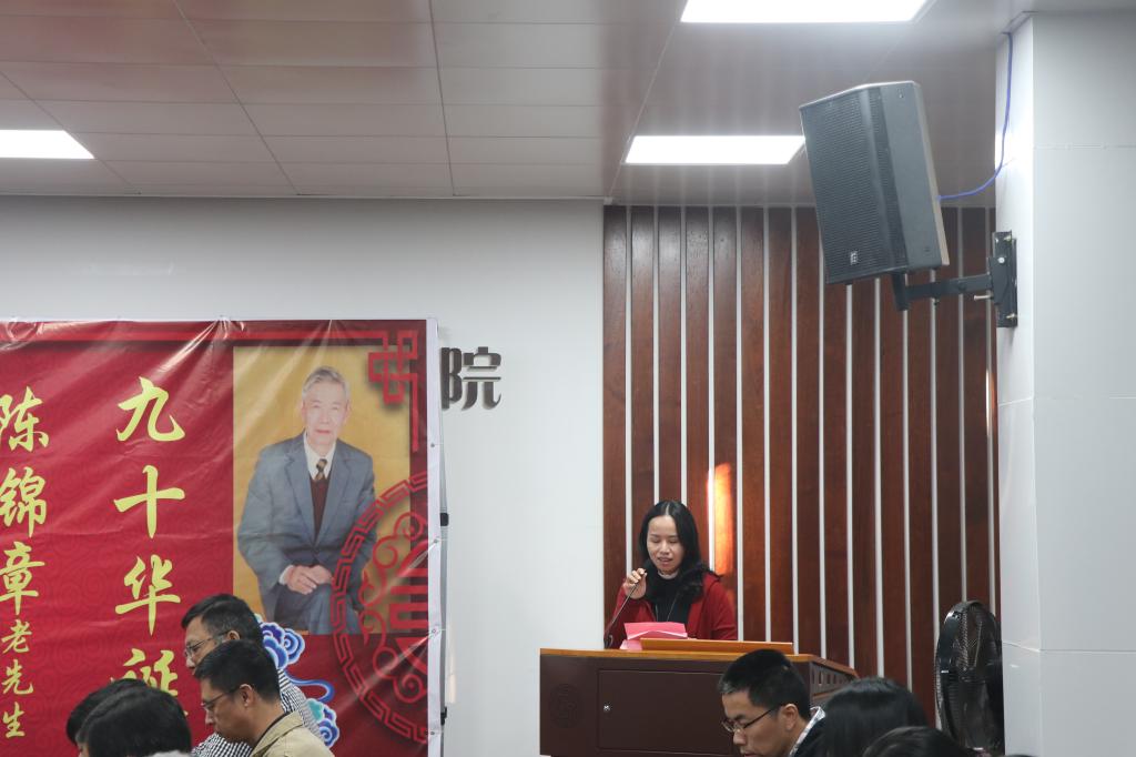 带着满怀的激动之情,刘利剑向到场的所有嘉宾隆重讲述了陈锦章老先生的事迹,介绍了到场的贺寿人员。在她的讲述中,一位心怀祖国、情系人民、潜心科研、严谨治学的老教育家50载为环境专业奋斗的历程犹如画卷一幅幅地展现在了我们的眼前。