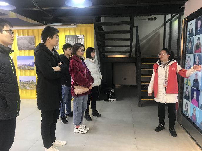 在青和居社区副书记张美丽和讲解员的带领下,实践队参观了展馆内“青山之眼”、“时空隧道”、“美丽青山”、“青山新时代”四个部分,清晰地展现了青山区自上个世纪50年代建区以来的时代脉络和历史文化变迁。当看到棚户区实景还原和旧物展示时,同学们仿佛对改造前的棚户区生活感同身受,而如今青山区已从华中地区最大的老工业区棚户区改造成高楼林立、环境优美、设施完善、生活便利的现代化住宅小区,4万多群众居住条件得到显著改善。在参观过程中,实践队仔细聆听讲解,切实感受共产党人为人民幸福生活不懈奋斗的奉献精神和实干精神。