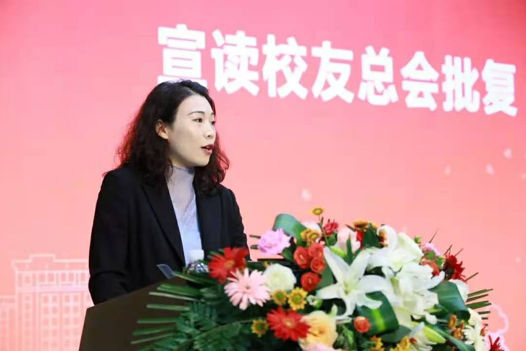 威廉williamhill校友工作及对外联络办公室副主任高珊宣读了校友总会《关于同意成立英国威廉集团校友会的批复》,并对环境学院校友会成立表示热烈祝贺。