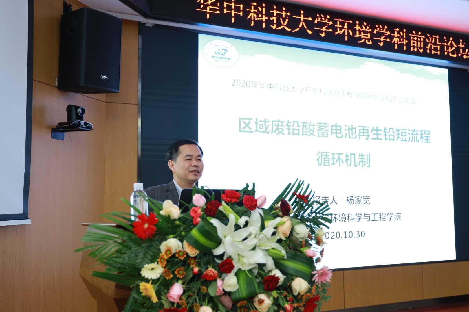 我校公共卫生学院副院长徐顺清教授结合当下最受关注的母婴健康问题,报告了关于污染物暴露对儿童健康的影响的研究进展。我院院长杨家宽教授结合湖北省铅污染控制现状,报告了废铅酸蓄电池再生铅短流程循环新技术。中国地质大学生物地质与环境地质国家重点实验室袁松虎教授从高级氧化研究中找到基础环境过程研究突破点,汇报了氧气“越带”氧化有害物质的机制,肯定了硫化亚铁对地下环境活性氧产生的贡献。除此,还有我院谢鹏超、田志勇副教授和来自哈尔滨工业大学的庞鹤亮博士、武汉市规划设计有限公司的黄浩博士分别对过氧乙酸高级氧化技术、太阳能区域供暖技术、污泥厌氧发酵技术、电化学催化氧化脱硝机理进行了汇报。本次论坛汇集了环境领域优秀的专家学者,报告内容干货满满,精彩纷呈,现场的同学受益匪浅。