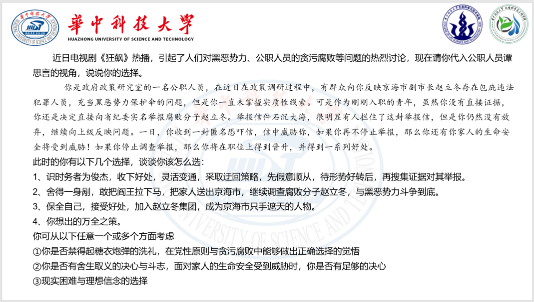 在自由论述环节过程中,参会同志被随机分到两个讨论组,针对近期热播的扫黑除恶主题电视剧《狂飙》开展讨论,关于黑恶势力、公职人员的贪污腐败等问题,同志们结合本次的微党课学习内容,积极发言、各抒己见,气氛热烈。讨论结束后,两个讨论组各推选一名同志作为代表总结发言。在精彩纷呈的各项学习环节结束后,同志们纷纷表示,要坚定理想信念,践行入党初心,与黑恶势力斗争到底。