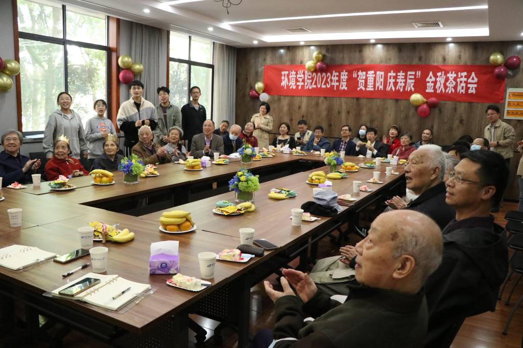 学院党委书记刘利剑率先发言,她以“暖心.聚力.传帮带”为主题向退休老同志们报告了近年来环境学院学科发展所取得的主要成绩和学院离退休工作开展情况,并向大家致以节日祝贺。茶话会上,现场播放了为老同志们精心制作的“贺重阳•庆寿辰”专题视频,大家一起回顾往昔的难忘岁月,共同观看学院新貌展示图像,聆听来自院领导、3个专业系和环境实验中心在职教职工的心声和美好祝愿。