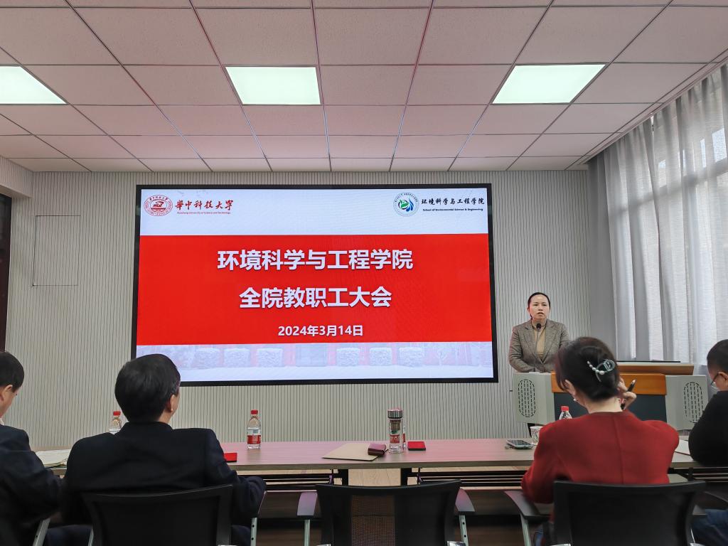 2024年3月14日下午,环境学院于东三十一楼401会议室召开全院教职工大会,会议由党委书记刘利剑主持,学院全体教职工参加会议。