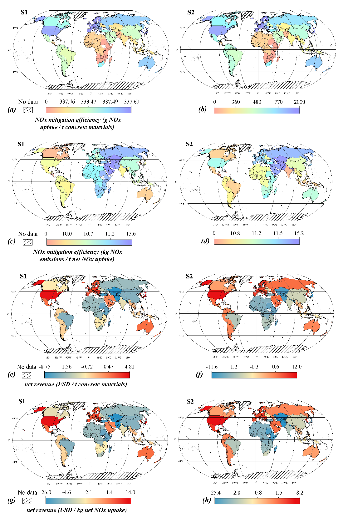研究人员在论文中提出了一种将建筑材料高值循环利用与大气污染治理相结合的新策略,即将混凝土的生产和再生利用与NOx的污染控制进行有效的协同,有望实现水泥建材资源循环与NOx治理的双重目标;如果能实现混凝土(含废弃混凝土)固氮技术的产业化,仅在2021年可减少约340-690万吨的NOx排放,约占全球工业源NOx排放的6%-13%;若在全球范围广泛能大范围持续推广固氮技术,截止到2050年预计可累计减排约1.3-3.8亿吨NOx,经济效益也十分显著;考虑到混凝土固氮与固碳技术存在较为直接的竞争关系,研究表明在大部分国家和地区,推广矿化固氮技术产生的经济和环境效益等方面均超过了固碳技术。