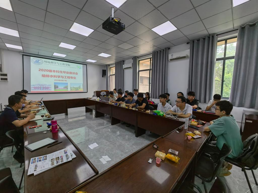 2024年6月21日上午9点,给排水科学与工程专业本科毕业生座谈会在欣苑1栋409会议室顺利召开。会议中,全体专业教师、辅导员杨凯和2024届毕业生欢聚一堂,对本科生培养规划、课程安排、专业认知、就业指导等问题展开了激烈讨论。