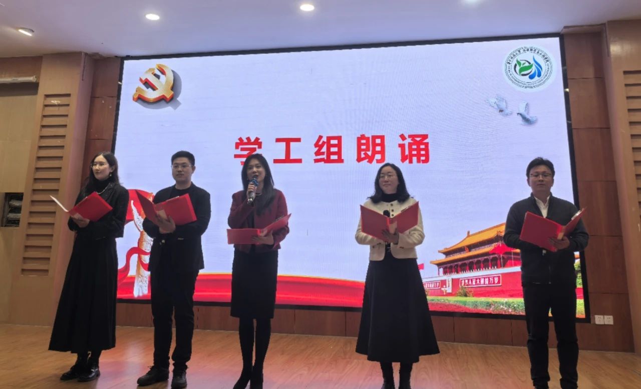 在这一次党员故事会中,学工组辅导员也为我们带来了朗诵节目《七十五载谱华章,生态文明启新航》。起伏婉转的语调,诉说对党和人民的热烈感情;铿锵有力的话语,展现矢志为国的坚定决心。