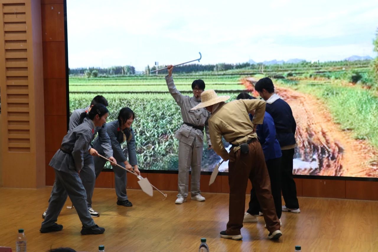 研究生第七党支部为我们带来《吃水不忘挖井人》情景剧,讲述了毛主席带领红军战士为沙洲坝饮水困难群众挖井的故事,这口"红井"承载着党和人民的深厚情谊,见证了密切联系人民群众的优良作风,同时也感召着后代党员铭记为人民谋福祉的初心,身体力行为人民服务。