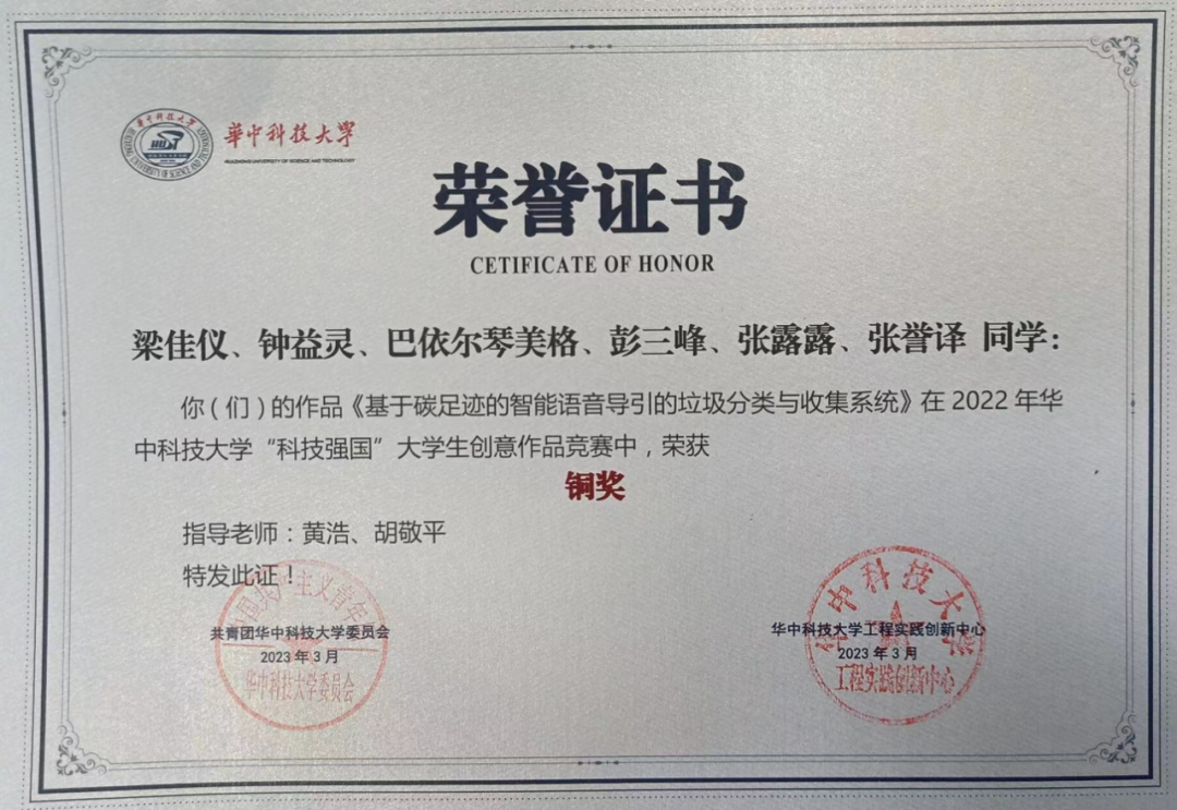 参与教师班主任工作以后,我也积极发掘班级同学的兴趣爱好,并积极推荐班级学生尽早参加教师课题组实践自己的科研想法。班级部分对计算机信息化感兴趣的同学在胡敬平教授的指导下,通过兴趣爱好结合专业知识,开展了人工智能关联垃圾分类的探索尝试,并获得了2022年威廉williamhill“科技强国”大学生创意铜奖,进一步激发了班级同学对专业认知和兴趣点。
