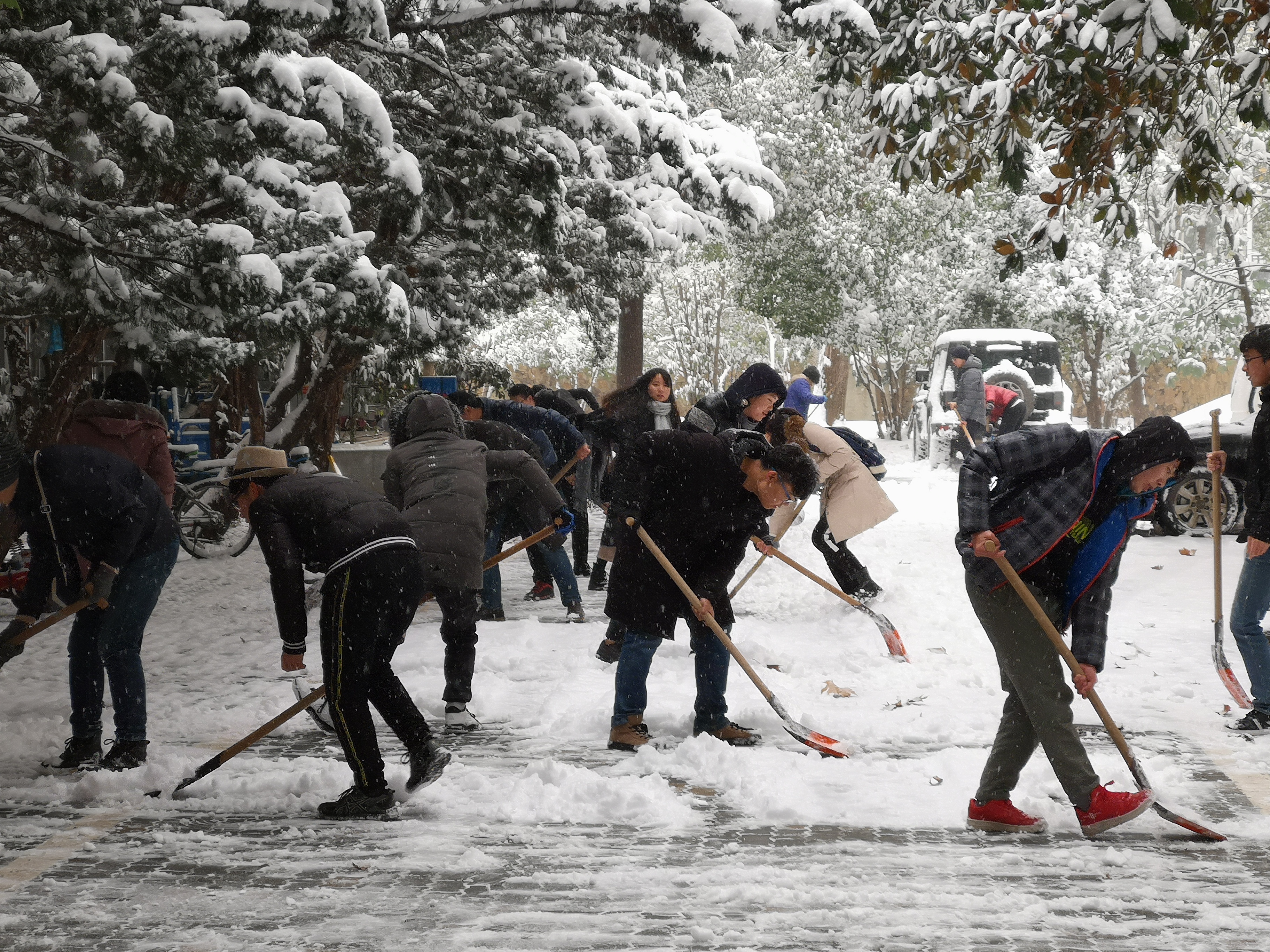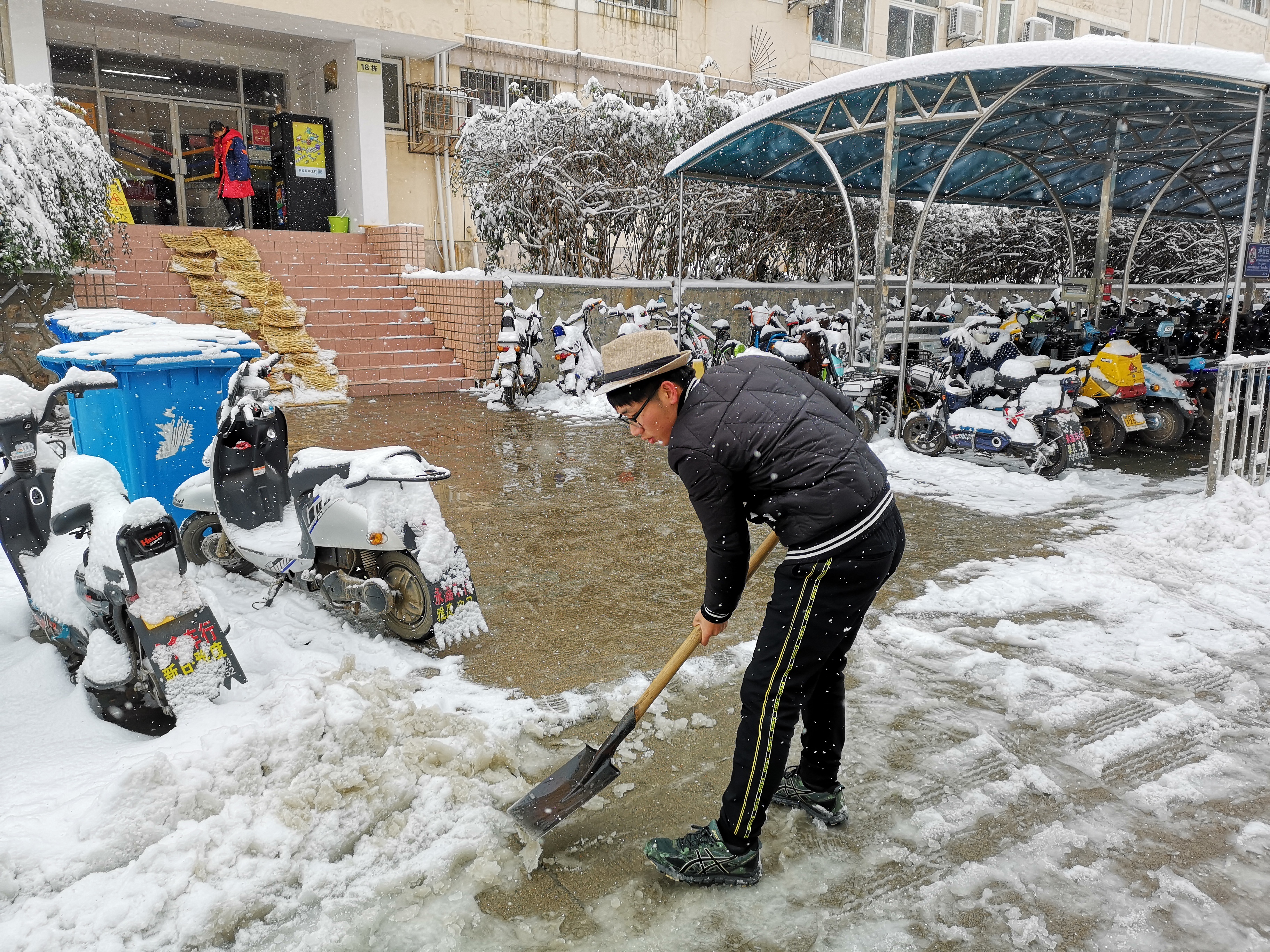 上午9点,还沉浸在飘雪穿庭作飞花美景中的环境学院师生党员们便已经接到了学院发出的扫雪召集令,召集师生党员们针对学生宿舍18栋、学院办公楼东十三楼、实验楼东十六楼开展扫雪行动,没有多余的动作和语言,党员们心里知道,再过一会儿,学生们要外出吃饭,勤学好研的广大师生们要开始工作学习了,他们需要有人扫出一条安全好走的路来。