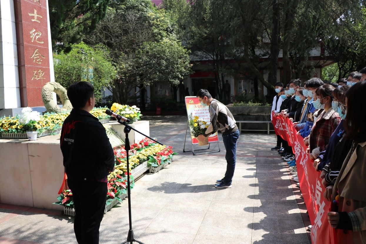 活动最后,学生党员代表李留洋到革命烈士纪念碑前致悼词,带队辅导员余露代表全体党员上前献花并鞠躬,全体党员重温了入党誓词。活动结束后,师生党员自由参观烈士陵园的其他各处,去更深入地了解历史,去更通透地理解先人,久久不愿离去。