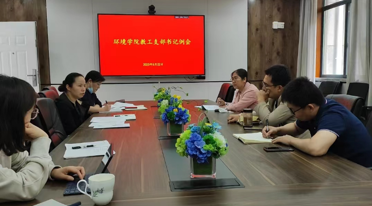 (通讯员 杨群)5月21日下午,环境学院党委组织召开了5月份教职工党支部书记例会。会议由环境学院党委书记刘利剑主持。院党委副书记侯慧杰、来自院办和各专业系的教职工党支部书记等7人参加了本次会议。