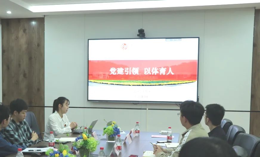 体育学院本科生党支部书记萧芳冰以”党建引领 以体育人“为主题,介绍了体育学院如何发挥党建龙头作用和战斗堡垒作用,结合自身专业特色强化以体育人实效。