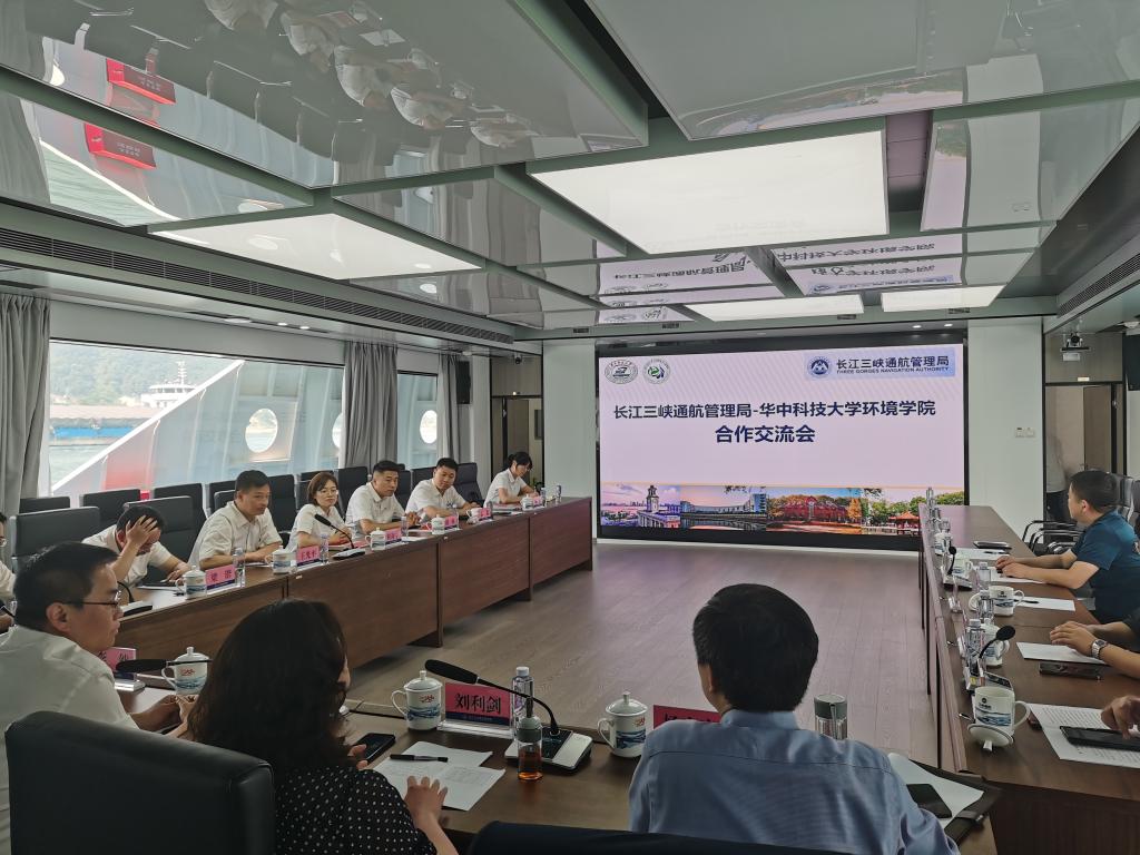 在“氢舟”的现代化会议室中,双方围绕党建与中心工作双融双促进行了深入交流。共同进行了“中国共产党纪律建设”专题理论学习,结合“合作共赢、绿色发展”的主题开展交流。刘利剑书记、杨家宽院长分别以 “响应国家生态文明建设号召加快环境学科建设步伐”、“长江新航道绿色智慧工程技术联合研究”为主题作了专题交流;长江三峡通航管理局发展规划处副处长侯国佼就响应国家生态文明建设事宜进行了深入讨论;三峡航道局局长刘振嘉领学“党纪学习要把握三个坚持”,并向与会同志介绍了长江三峡通航管理局和“三峡氢舟1”号的具体情况;工程技术中心主任李然汇报了三峡通航枢纽技术上的攻关和突破;双方就环境保护与绿色能源技术创新等方面的合作进行了充分的沟通交流,达成共建研究生培养基地和联合建立长江新航道绿色智慧工程技术联合研究中心的初步意向。