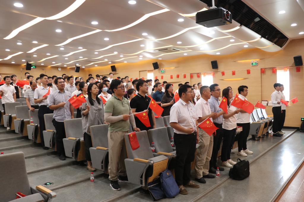 大会在雄壮激昂的《义勇军进行曲》中拉开帷幕,全场师生高唱中华人民共和国国歌,庆祝中国共产党成立103周年。