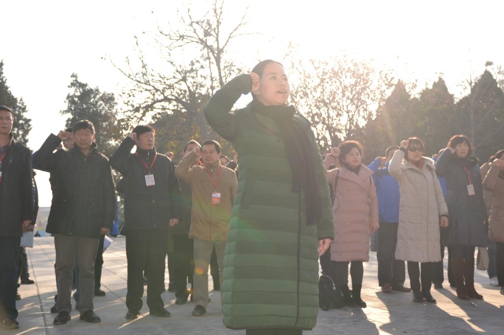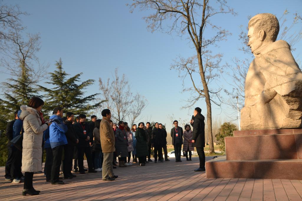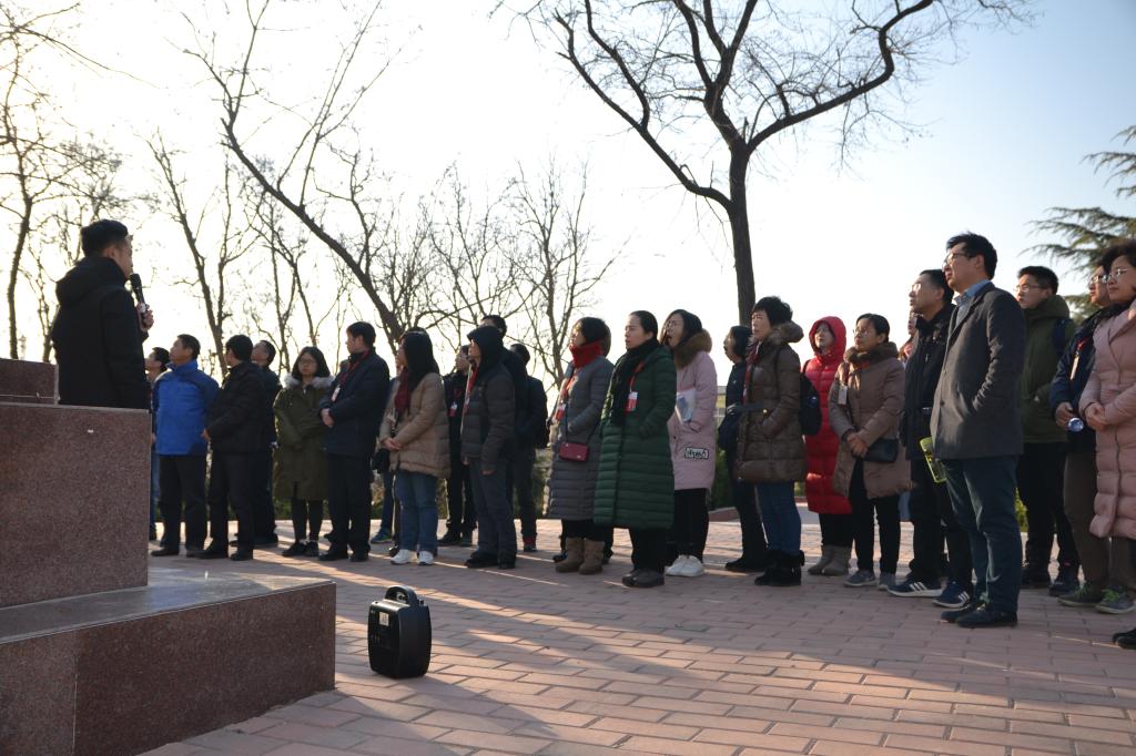 12月9日凌晨6点10分,全体学员整装出发。当天下午,现场教学拜谒了焦裕禄烈士陵墓,院长杨家宽代表全体学员向焦裕禄烈士敬献了花篮,党委书记刘利剑在烈士墓前庄严领誓,带领全体党员重温了入党誓词、重燃了入党初心。