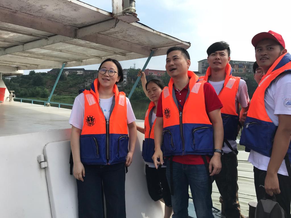 饮水知源,泛巡资江辨浊清。7月13日,实践队乘坐邵阳市海事局的巡逻船实地调研资江水源地保护情况。沿着资江,实践队现场查看了工业街水厂取水口、城西厂取水口、桂花渡取水口等资江市区段几个重点取水区域的水源质量和环境保护情况。面对这样珍贵的实地调研机会,队员们兢兢业业,拍照、记录、取水、化验、测水质,时刻保持积极的态度,充分运用理论知识,为资江的绿水青山出谋划策。