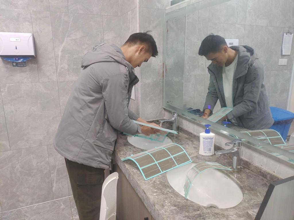 志愿者团队开展了清洁教师办公室空调滤网的志愿服务活动。清洗过程中,志愿者们展现了高度的责任感和敬业精神。经过志愿者的细心清洁,教师办公室的空调滤网焕然一新,办公环境得到了显著提升。