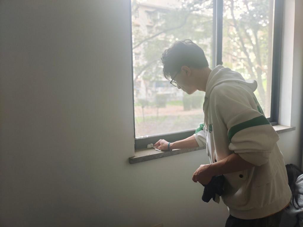 3月23日至4月3日,志愿者们分批对韵苑18栋和欣苑1栋部分社区公用房和教师办公室进行空调滤网的清洗和卫生扫除。