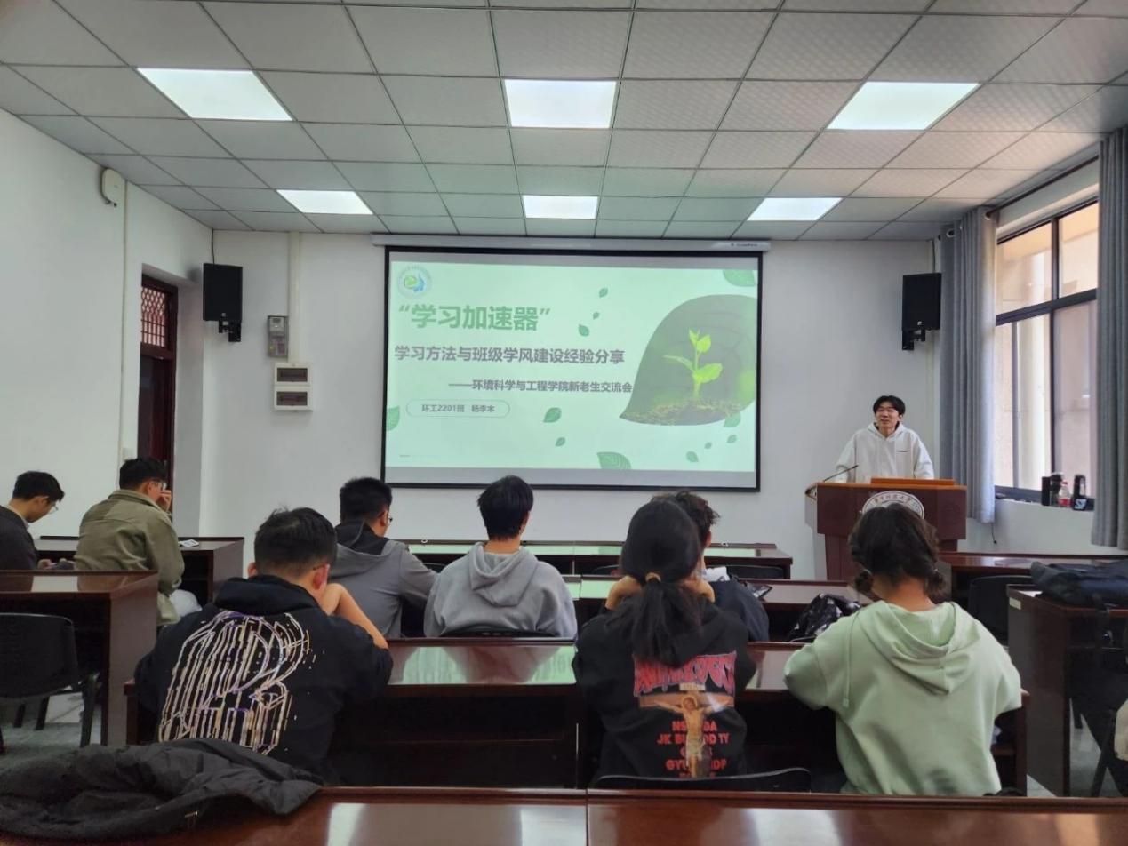 3 月 29 日的学习方法分享会在环境楼举行。学生党员杨李木同志围绕自身大学三年的学习经历,从课程学习、科研实践、时间管理等方面展开分享。他系统地讲解了制定学习计划的方法,结合自身参与专业竞赛、科研项目的经历,向新生们传授如何平衡学业与实践的技巧,并鼓励新生主动探索专业领域前沿知识,积极与导师沟通交流。杨李木同志详实的分享内容、清晰的讲解逻辑,为新生们规划大学生活提供了切实可行的指导。