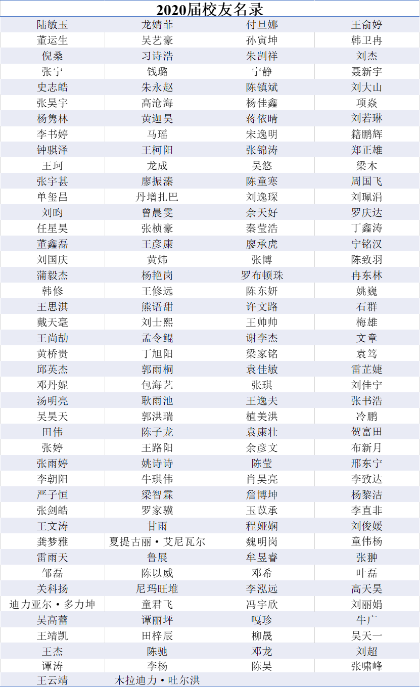 2020届本科生校友名录