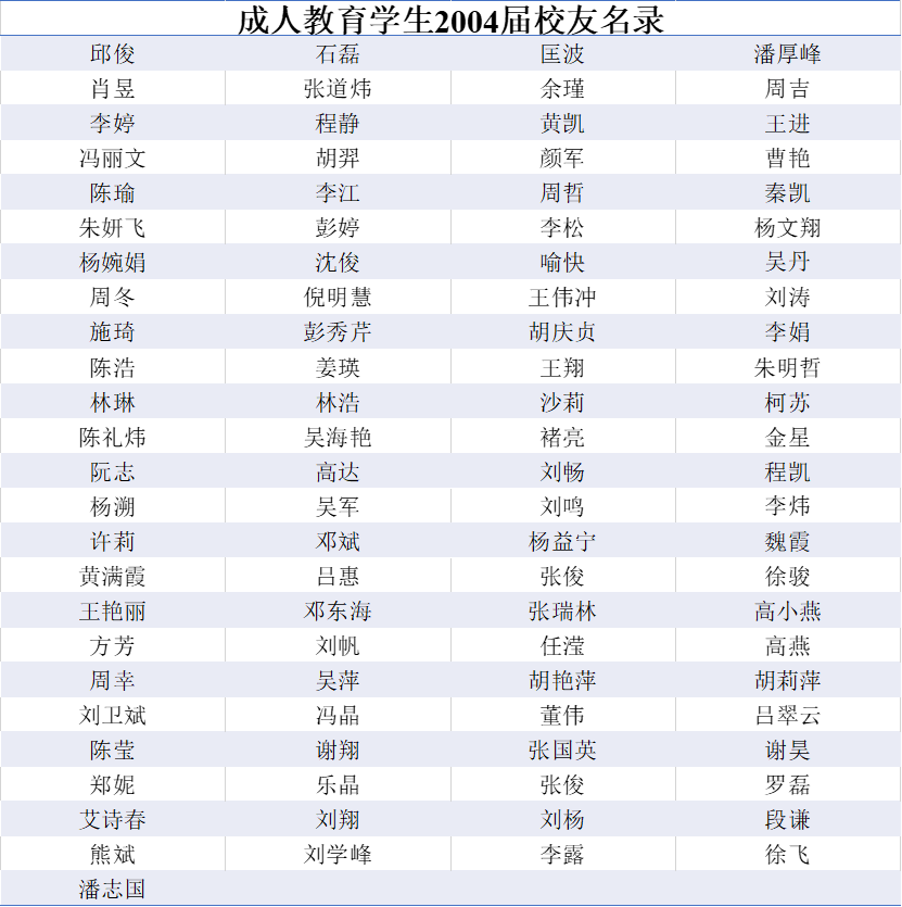 2004届研究生校友名录
