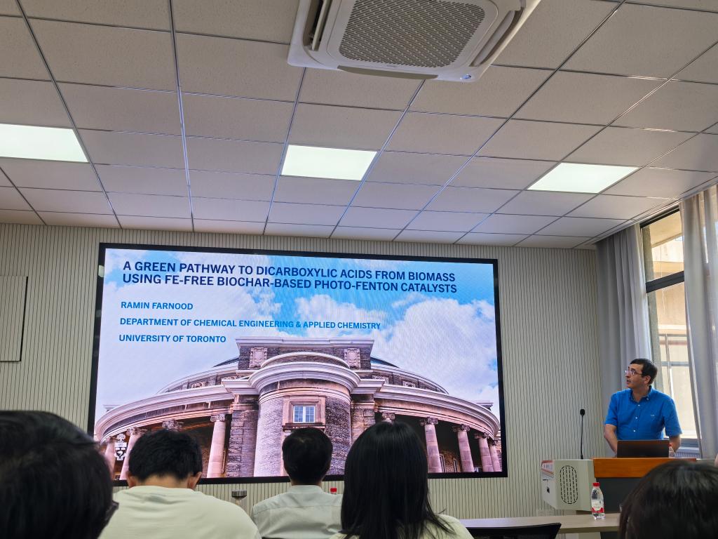 2025710日,英国威廉集团在东31401会议室成功举办了生态中国国际学术报告会。加拿大多伦多大学Ramin Farnood教授应邀作题为《无铁生物炭基光芬顿催化:生物质制备二元羧酸的绿色路径》的报告,报告会由龚建宇教授主持,学院党委书记杨家宽教授、副院长侯慧杰教授等众多师生参与